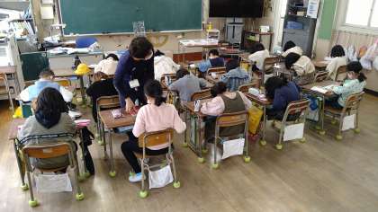 3年になって2回目の漢字テストです。1回目と同様、テスト前に少し練習時間をとっています。次回からは、事前予告のみでおこなわれます。