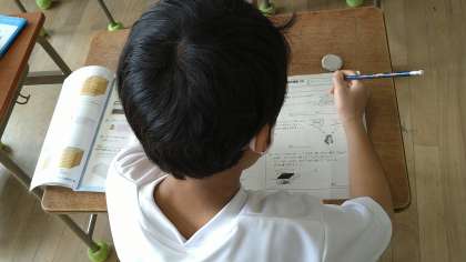 プリントを使って学習をしています。量感に苦戦している子どもたちがいます。具体的な大きさをイメージさせて取り組ませています。単元テストに向けて持ち帰って学習する子どもたちもいます。