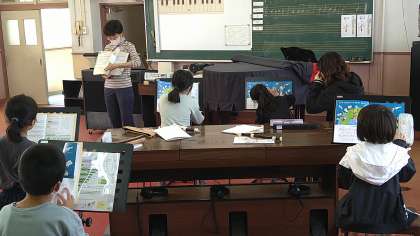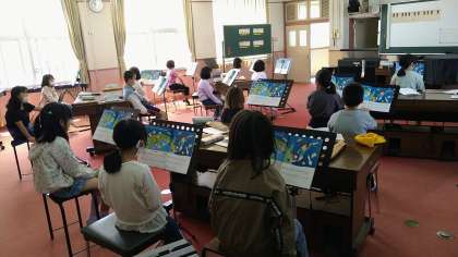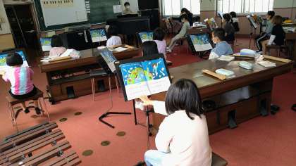 「小さな世界」を旋律を重ねて歌っています。そのあと「キラキラおひさま」の音階を覚えるために音階で歌っています。次回は覚えた音階を鍵盤ハーモニカで演奏する予定です。