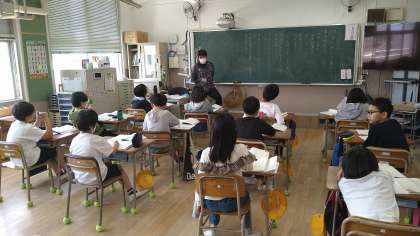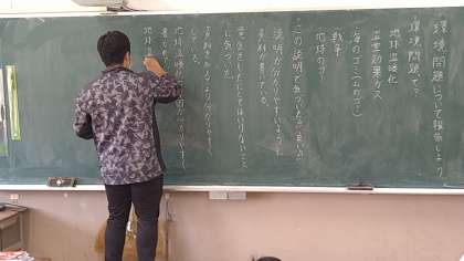 「環境問題って?」という問いに対して子どもたちからは、「地球温暖化」「温室効果ガス」「海(山)のゴミ」「戦争」「地球のゴミ」という考えが出ていますが