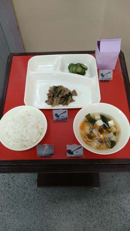 今日は小おかずできゅうりの甘酢づけが提供されています。給食の食材は必ず熱処理されています。食中毒や感染症を防ぐためです。