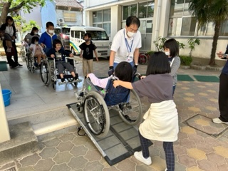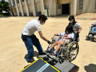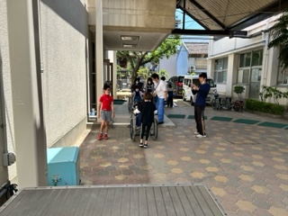 車イスに乗って押してもらうのはどんなものか、人が乗った状態の車イスを押すのはどんなものか、体感できたと思います。