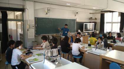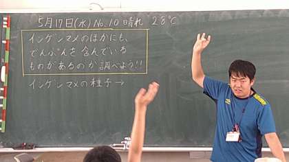 前回の学習でインゲンマメの種子と子葉に薄めたヨウ素液をつける実験をしました。今回は、インゲンマメ以外のものとして、片栗粉とじゃがいもで実験をしています。