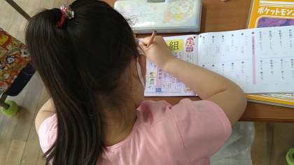 漢字ドリルを使ってその漢字の使い方や筆順を確認しながらていねいに学習を進めています。今回の学習では、「組」と「考」の2文字を書いています。