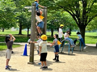 ゴールした班は、ゴール付近にある遊具で遊んでいます