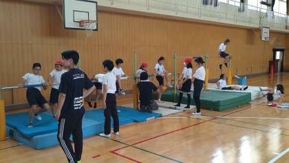 来週の発表会にむけてできそうな技の習得に励んでいます。何度も何度も繰り返し練習しています。この時間の終わりに今日初めてできた技をみんなの前で披露しています。