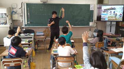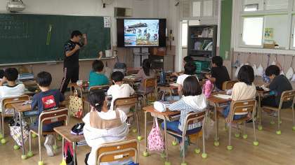 約70年前のイラストをから気づいたことを発表しています。昔と今の農業の違いに気づいている児童もいます。