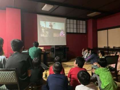 入浴も早くすみましたので、予定を前倒しして夜の集いを楽しんでいます。