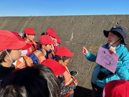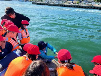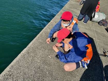 釣り糸の準備をした後、エサの付け方を聞いています。