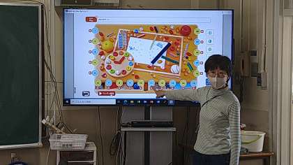 今日の調子を聞いたり、答えたりしています。数字は1〜20について学習しています。おはじきゲームをして楽しみながら数字の発音をしています。