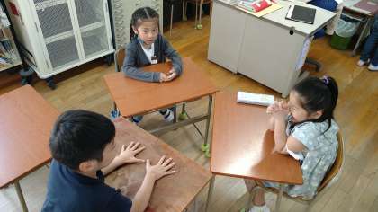 3人ずつの4つのグループに分かれて町のお店を中心に探検に行きます。お店の他にも比売許曽神社にも行きます。探検に行く際に聞く質問を各グループで考えています。