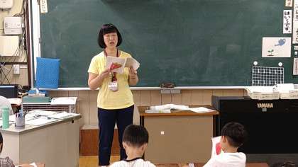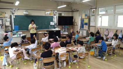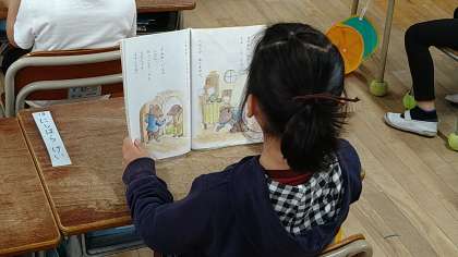 みんなで声をあわせて読んでいます。音読の宿題にも出ているので、内容をしっかりつかめている子どもたちもたくさんいます。
