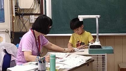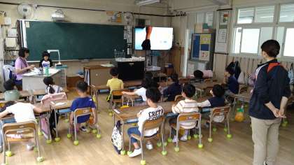 学校探検で発見したことを発表しています。
