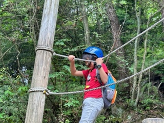 雨が心配まので予定を入れかえてアスレチックをしています