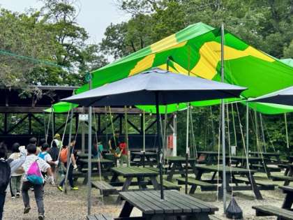 アスレチックも無事終わり、カレー作りのために、野外活動センターへ移動してきました。