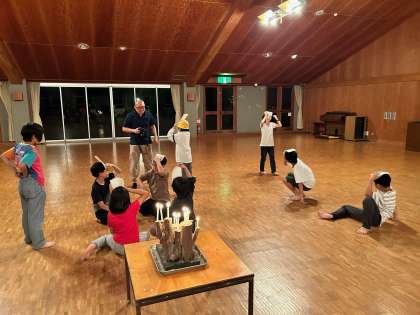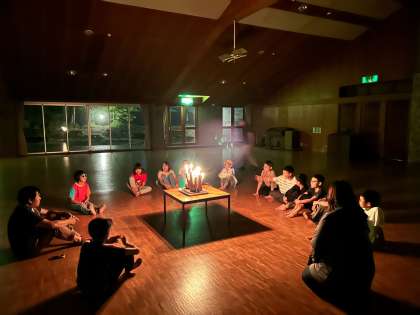 最後はキャンドルの火を囲み歌っています。