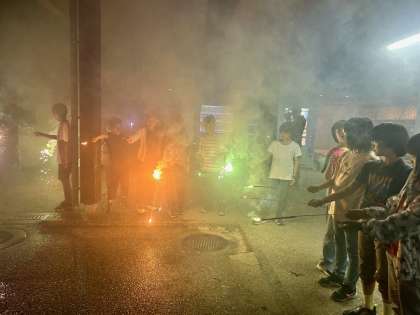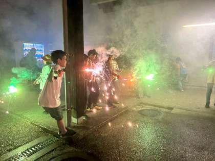 キャンドルファイヤーの後は、花火を楽しんでいます。