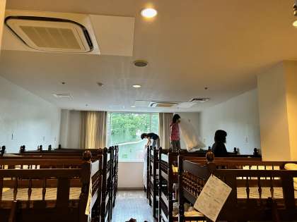 起床し片付けを始めています。