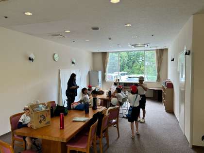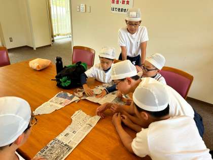 朝食も終わりましたので、待ち時間の間、談話室で新聞紙を使ったアクティビティーを楽しんでいます