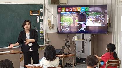 シュナイダーエレクトリックホールディングスの方々にゲストティーチャーとしてお越しいただき、子どもの貧困や再生可能エネルギー、自分でできることなどについて教えていただいています。