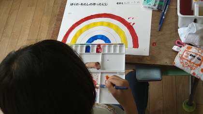 「ぼくの・わたしの作ったにじ」というテーマで学習を進めています。