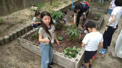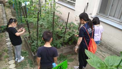 学習園で育てている野菜の観察をしています。