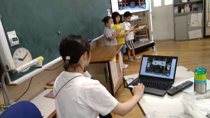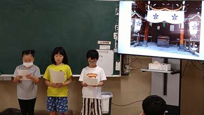 校区探検で調べたことを発表しています。
