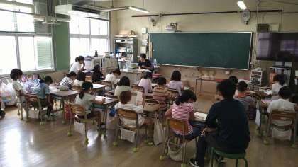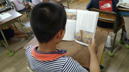 1文ごとにリレー読みをしています。全員で読むのはこの時間が初めてです。音読の宿題の成果をしっかり発揮できている児童もいます。