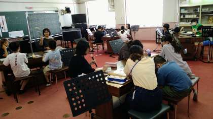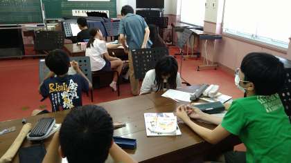 先に8小節の作曲に取り組み、次にその曲にあわせて作詞をしています。作曲はみんなで相談しながら決めていきました。作詞はそれぞれ考えています。