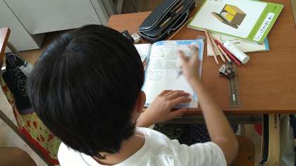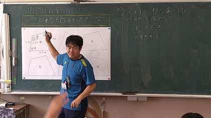 図形の合同と角「ぴったり重なる形と図形の角を調べよう」を学習しています。