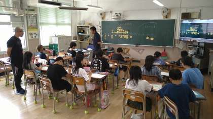 前の学習で、数直線に記録などのしるしわならべた図であるドットプロットについて学習しています。今回は前回の学習のノートを互いに見合うところから始まっています。