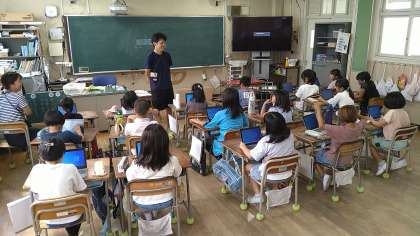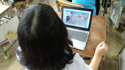 学習発表会に向けてタブレット端末の活用に取り組んでいます。