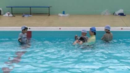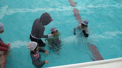 背浮きの次は、服を脱いで水着になって浮いたり泳いだりしています。服という重りから開放されて気持ちよく浮いたり泳いだりできています。