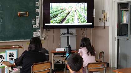 2つの県の日本一について「NHK for School」を使って学習を進めています。それぞれ、学生服・いちごの生産が日本一です。