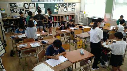 東小橋小学校では、運動場で遊べる休み時間が低学年(1・2・3年)と高学年(4・5・6年)が交替制となっています。それぞれ思い思いに過ごしています。