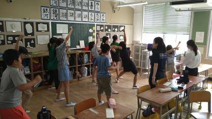 2つのダンスの練習をしています。1つは「江南スタイル」、もう1つは、「カイホウエクササイズ」です。踊りやすいようにアレンジしています。
