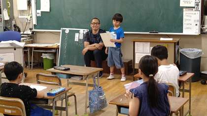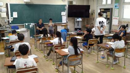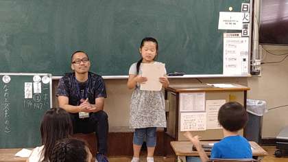 1人ずつ考えていった質問と郵便局員さんの回答を発表しています。子どもたちの発想は豊かなので、なるほどと感じる質問がたくさんありました。