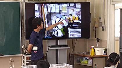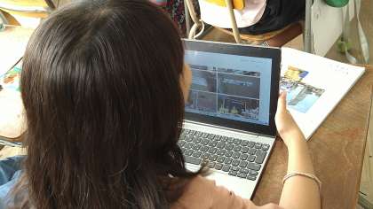 当日、タブレット端末を持って行き撮影した写真を見ながら学習を進めています。