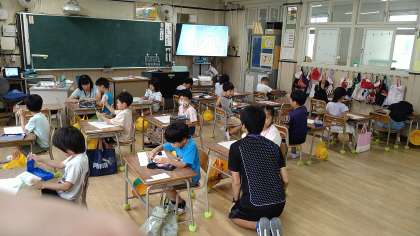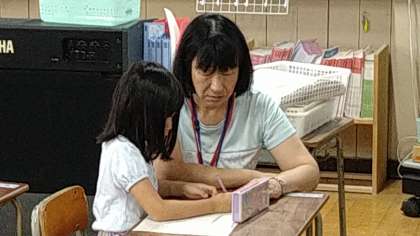 1年では、1学期に単元テストをおこなっていません。ひらがなやカタカナ、漢字など言葉を中心に学習してきました。初めてのテストですが、がんばって取り組んでいます。