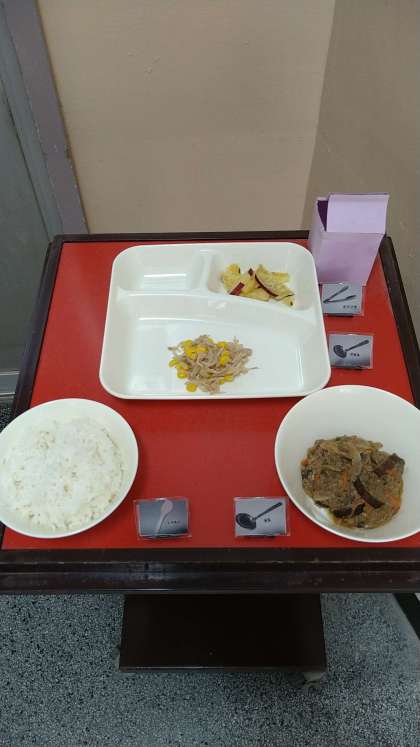 小おかずに「焼きさつまいもの甘みつかけ」が提供されています。さつまいもは、焼き物機「蒸し焼きモード」で調理しています。