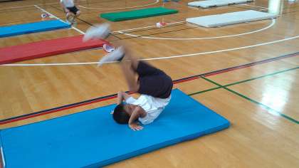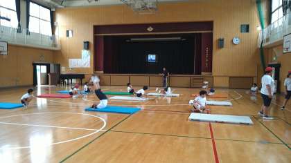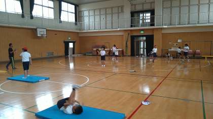 マット運動は「跳ね起き」を、短なわは、学習カードを使ってあや跳びや交差跳び、2重跳びなどに挑戦しています。短なわは手首を上手に使い巧みに跳べている児童もいます。