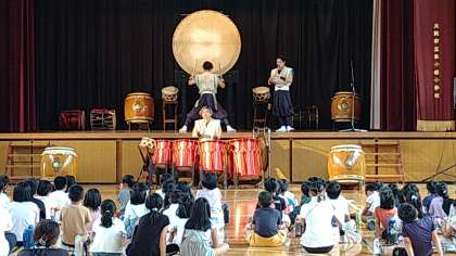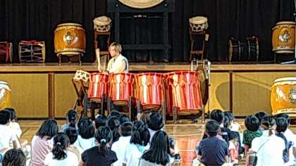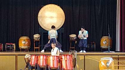 太鼓は小さいものは軽く高い音が大きいものは重く低い音が鳴っています。大きいものは体に振動が伝わってきます。