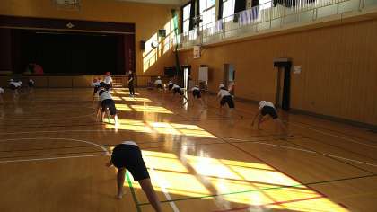 動きは揃ってきています。どのような動きがよいのか確認しながら指導を進めています。少人数ですが、声も出るようになっています。当日までさらに進化することと感じる練習となっています。