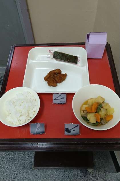 「カツ」は豚肉を給食室で揚げています。「みそ」は八丁みそと赤みそが使用されています。