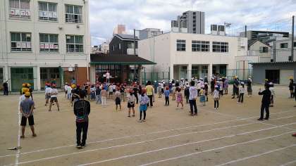 朝の時間(15分間)を使って運動会の練習をしています。