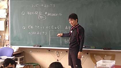 平日と休日の違いと季節ごとに売れる個数の違いについて考えています。それぞれの経験をもとに自分の考えを発表しています。