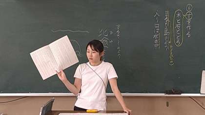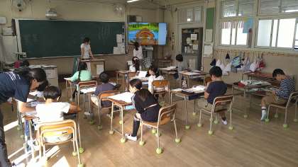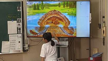 6場面のビーバーが巣を作る様子の説明について読み進めています。その特徴である巣の構造について考えて発表しています。