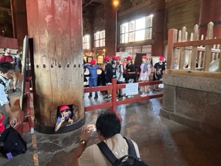 大仏殿の中で穴くぐりをした後、班にわかれてオリエンテーリングに出発しました。