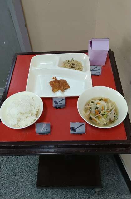 小おかずに「鶏肉のチリソース焼き」が提供されています。チリソースではなく、豆板醤で辛味をつけています。
