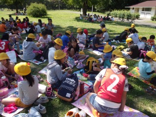 ウォークラリーのあとは、たてわり班で仲よくお弁当を食べて遊びました。